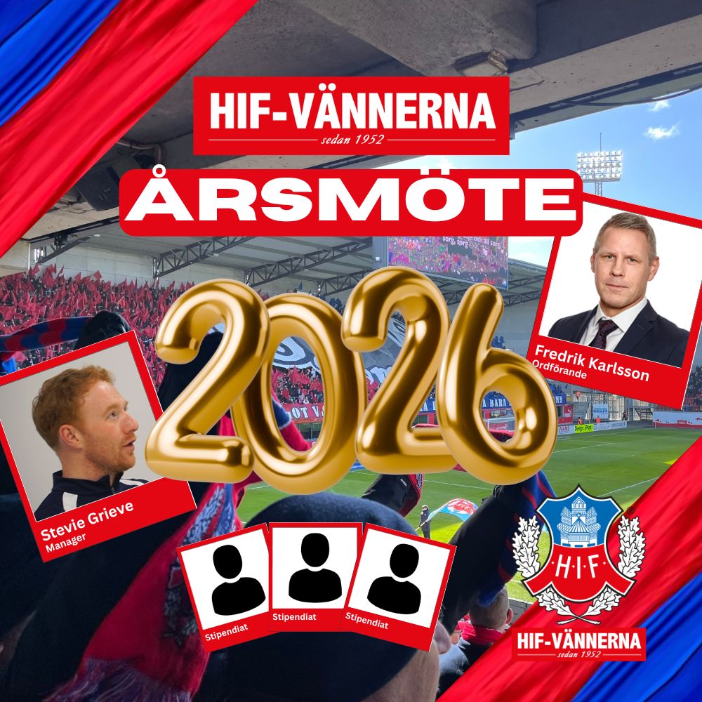 Kvällen inleds kl. 18.00 med kaffe och kaka. Därefter sker stadgeenliga årsmötesförhandlingar. Ev. motioner skall vara styrelsen tillhanda senast den 17:e mars. Ni får även träffa herrarnas manager Stevie Grieve, HIFs ordförande Fredrik Karlsson, stipendiater och pristagare, vilka kommer att delta och informera oss på årsmötet.